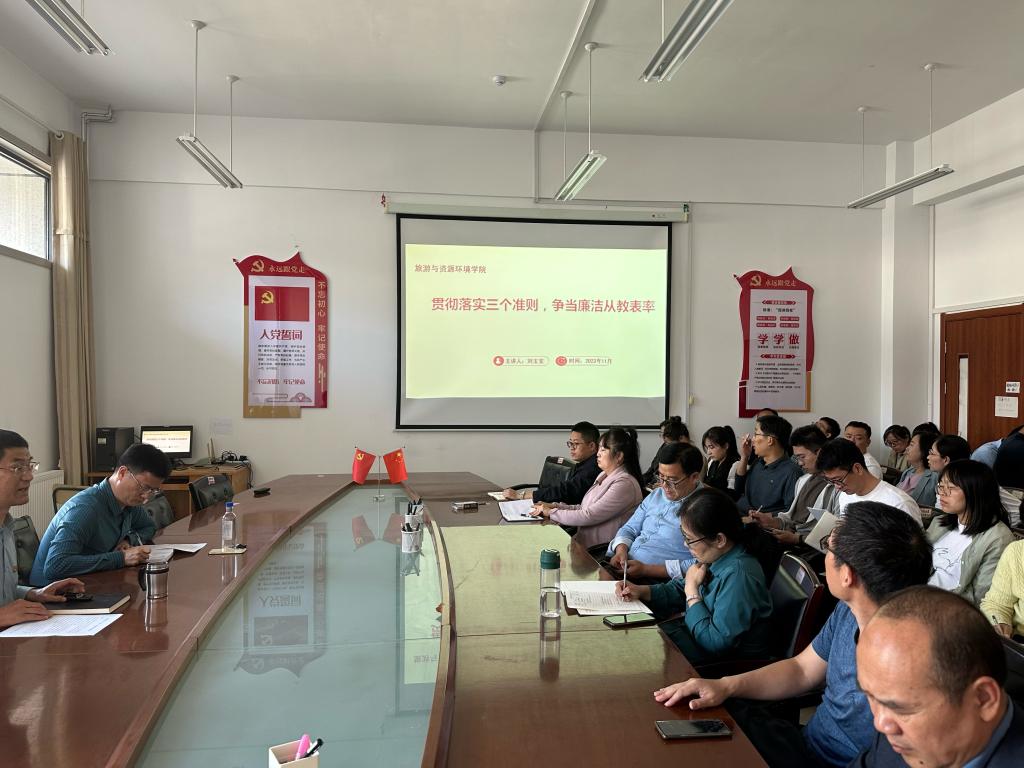 刘玉宝以“贯彻落实三个标准,争当廉洁从教表率”为题,结合典型案例,重点从深入学习贯彻三个准则、高校更需要深入贯彻落实三个准则以及廉洁从教从我做起、从现在做起等三个方面进行讲述,引导全体教工党员深刻理解党员廉洁的重要性,提高自身党性修养。同时,刘玉宝强调全体教工党员要加强自我约束,以三个准则为准绳,对学生、家长以及社会负责,坚持发扬“捧着一颗心,不带半棵草去”的优良传统,为推进清廉学院建设做好表率,以高质量党建推动学院高质量发展。