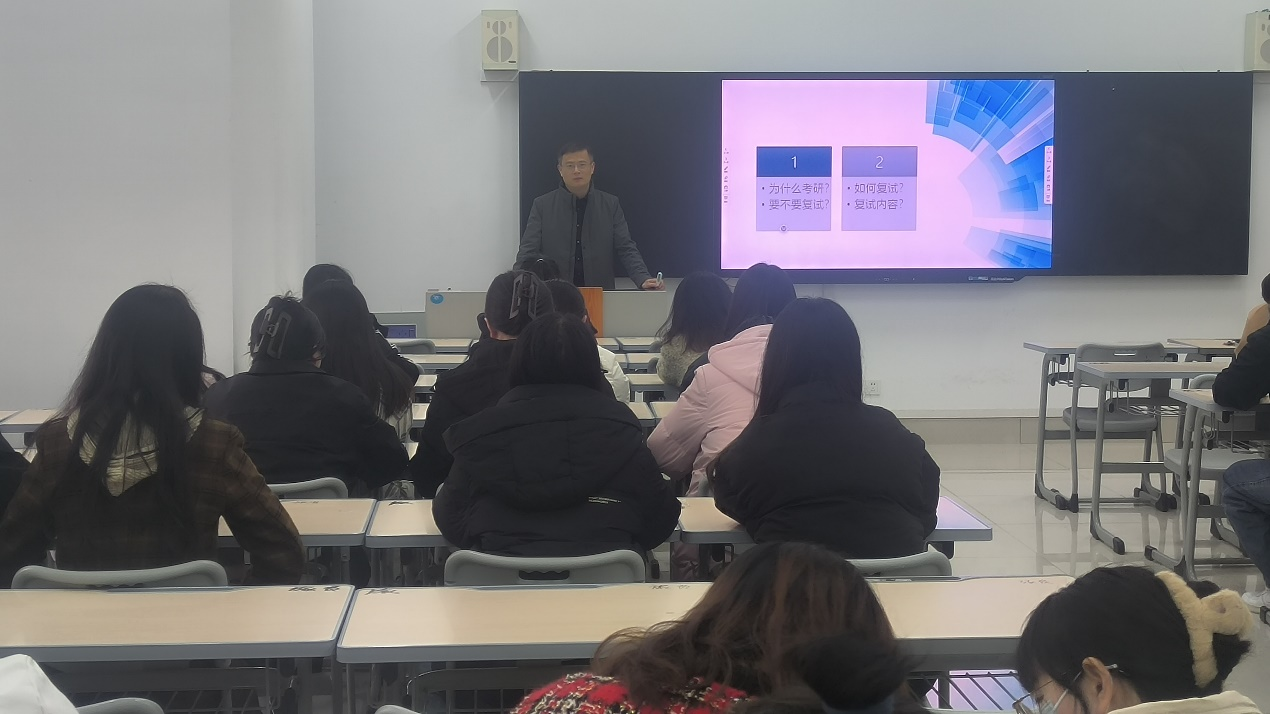 会上,王满堂向在考研初试取得好成绩的同学表示祝贺,充分肯定了同学们前期所付出的努力。随后,从考研复试内容、形式、注意事项和如何做好复试准备工作等方面,结合专业特点,深入浅出地分享了看法与经验,鼓励同学们树立信心争取一战成硕。随后,郝雅博士结合自身经历,从个人简历、自我介绍、复试专业科目准备、复试技巧、面试要点、导师选择、考研调剂等方面对2024年考研学生做了耐心细致的指导,并对同学们提出的问题进行了一一解答。