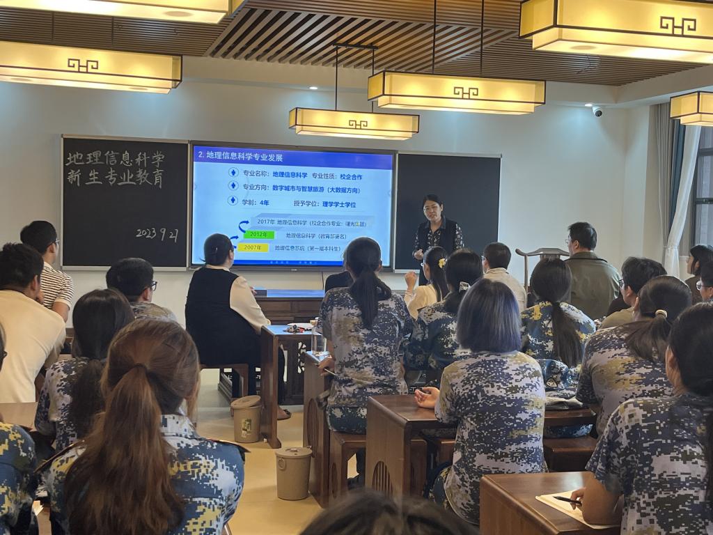 金秋九月,丹桂飘香,地理信息科学专业迎来了2023级新生。为帮助新生了解新专业、适应新生活,树立新目标,合理规划大学时光,KY开元集团官网精心指导安排,由地理信息科学教研室牵头,共同为新生准备了丰富多彩的入学专业教育。2023年9月27日下午,以豁然楼C507教室为主会场,报告由教研室主任凌娟副教授主持,专业负责人杜霞教授和企业驻校工程师高恒老师主讲,全体地理信息科学专业教师出席会议。