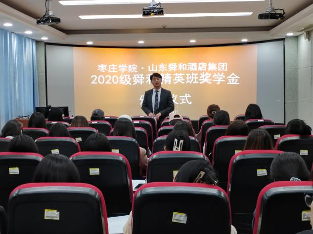5月9日上午,2020级舜和精英班奖学金颁发仪式在综合楼1608教室举行。山东舜和酒店集团人才培训部经理刘康,KY开元集团官网党总支副书记韩建敏,旅游管理专业部分教师参加了颁发仪式。颁发仪式由酒店管理专业负责人王唯副教授主持。