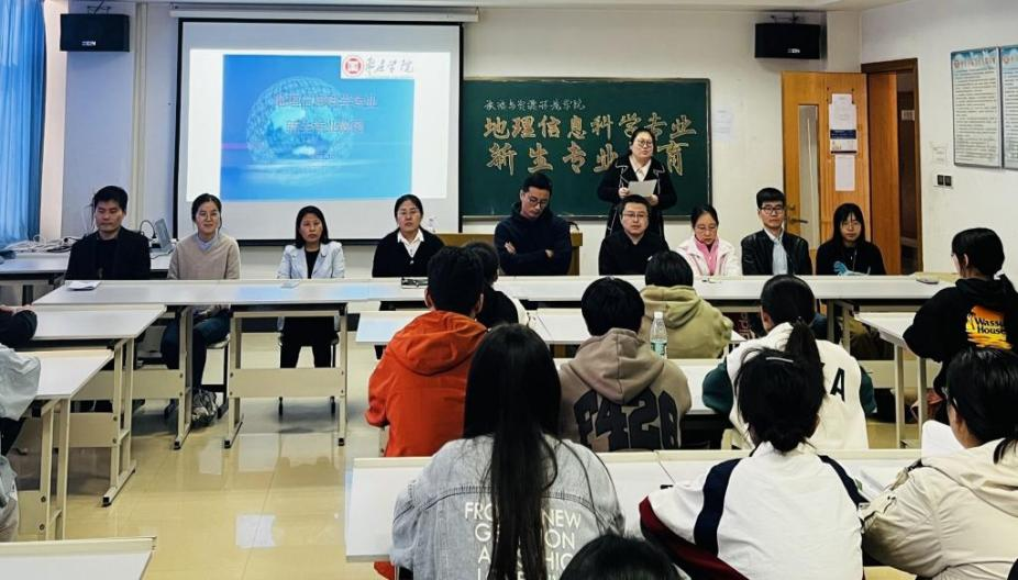 地理科学教研室老师于理工楼2403进行了新生专业教育,专业负责人丁兆运从基本情况、课程体系以及从业发展三方面向新生进行介绍,让新生们对地理科学有了初步的认知和理解。
