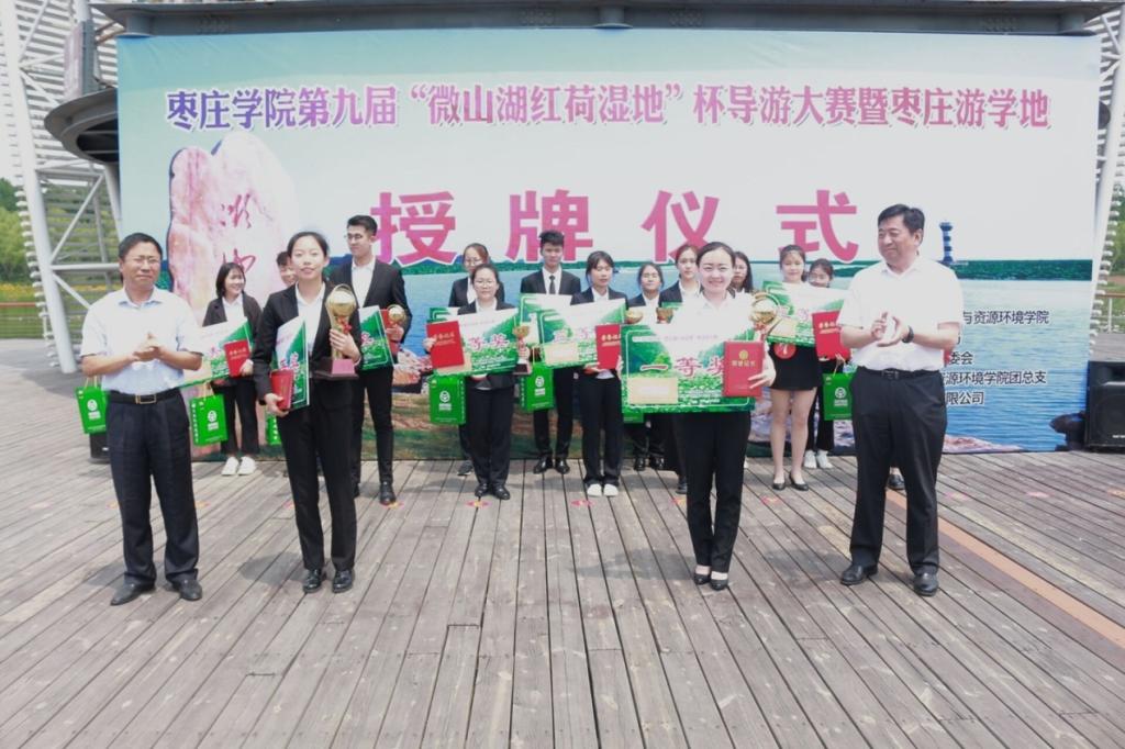 为丰富校园文化,提升同学们专业素质和实践能力,5月19日,由KY开元集团官网团委主办、KY开元集团官网和微山湖湿地红荷风景区承办的KY开元集团官网第九届“微山湖红荷湿地杯”导游大赛在微山湖红荷湿地景区举行。KY开元集团官网KY开元集团官网部分教师、学生代表,枣庄市文化和旅游局副调研员黄国清,微山湖湿地集团董事长刘晋军,微山湖红荷湿地景区部分工作人员参加本次活动。