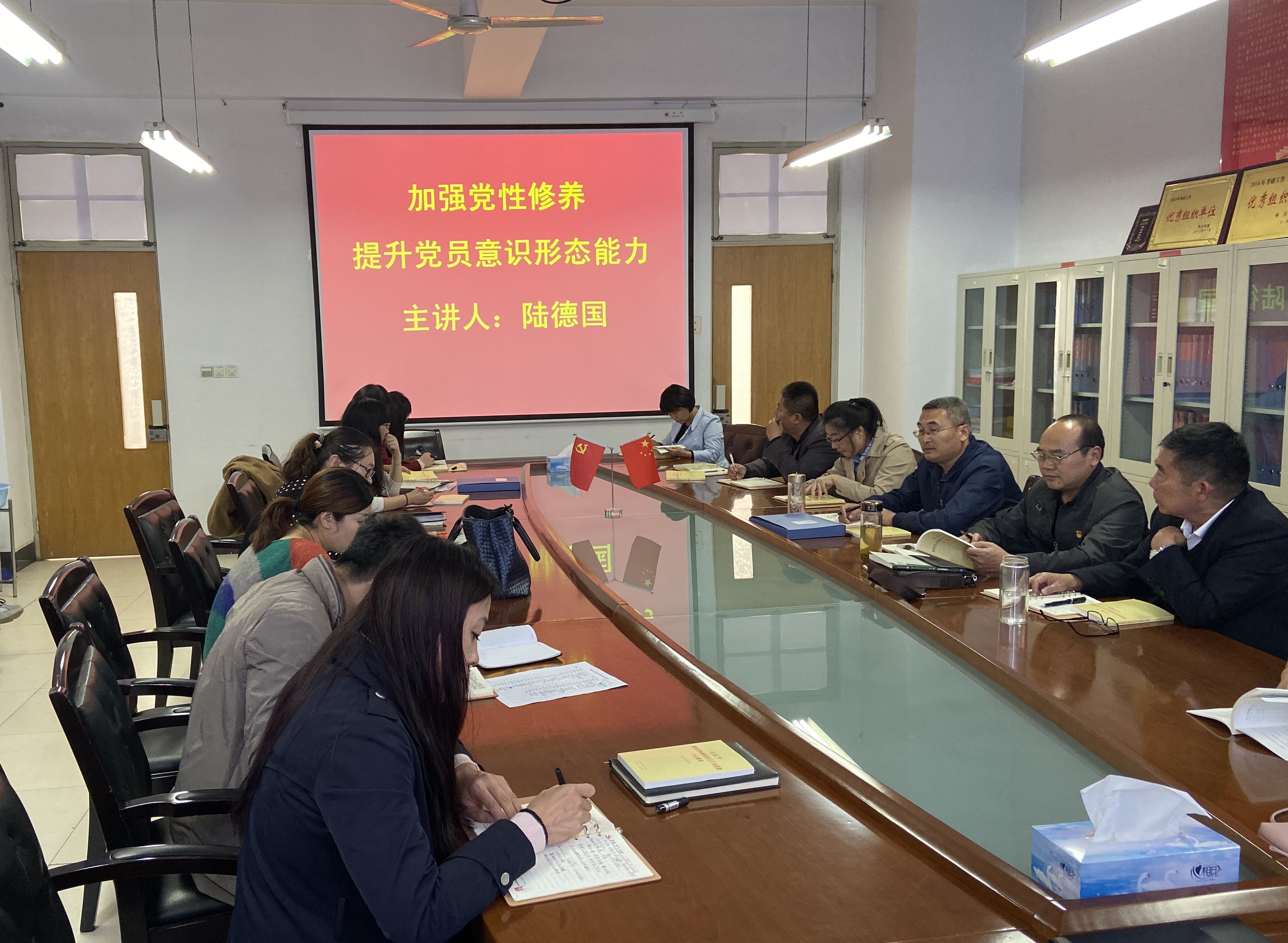 陆德国从三个方面阐述了党员应加强党性修养,弘扬优良作风,提升自身意识形态能力,同时向党员同志们提出三点希望:一是要加强党性修养,保持党员政治本色;二是要弘扬优良作风,营造学院良好发展环境;三是要增强党性修养,提升意识形态能力。