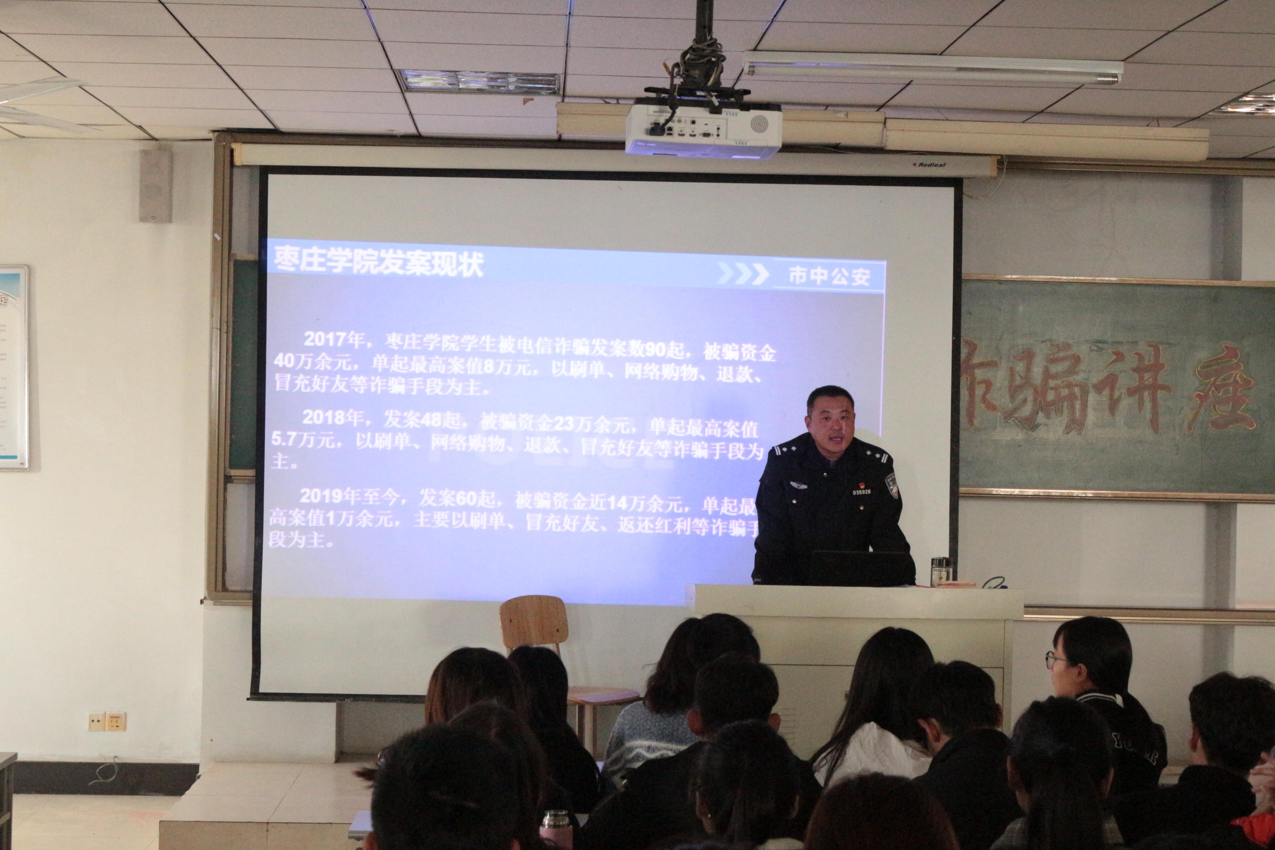 12月4日下午,KY开元集团官网在理工楼2505教室开展防诈骗安全教育讲座。本次讲座由渴口派出所刘鹏教导员主讲,200多名学生聆听了讲座。