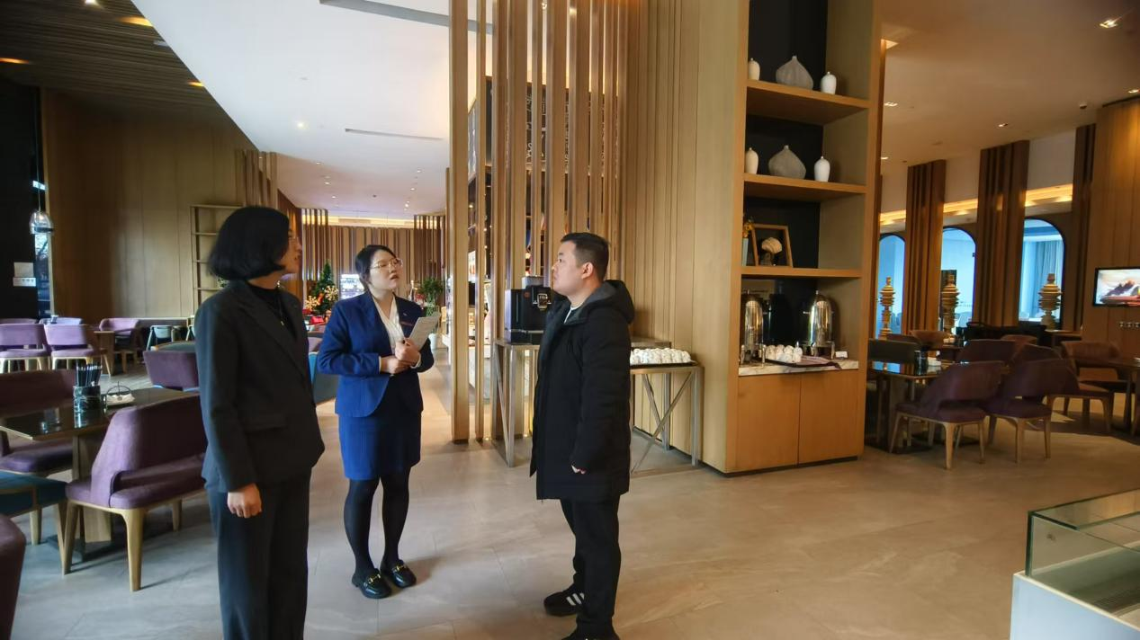阴法庭、周赢在酒店人力资源经理周加惠的陪同下,参观了酒店的大堂、客房、餐厅、会议设施以及休闲娱乐区域,深入了解酒店的运营管理模式、服务特色与企业文化。在与酒店的交流中,校企双方就校企联合培养、深化产教融合、共建实习基地、产学研平台建设等方面进行了研讨。双方共同探讨了如何打造优质人才“输送链”,实现校企资源的整合和优化运用,拓宽合作领域,促进学院人才培养与企业用人需求的精准对接。