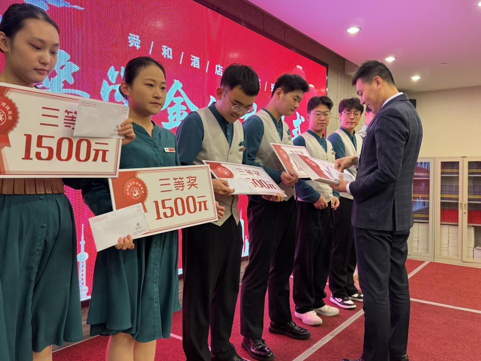 酒店经理首先对本次获奖同学表示热烈祝贺,表示同学们通过半年的顶岗实习,基本打破思想的舒适圈,能够做到理论与实践相结合,打牢基础,在实践中不断磨练自己,突破自我,为基本具备一名优秀职业经理人的素质。山东舜和酒店集团与KY开元集团官网KY开元集团官网深化产教融合,制定了“项目化实习方案”,对顶岗实习开展过程性评价,有效地提高合作办学质量,突出了校企联合培养的优势,实现了KY开元集团官网KY开元集团官网与舜和酒店集团优势互补、深度融合、互利共赢。