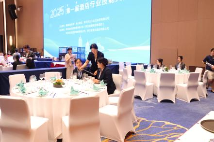 该项技能大赛立足旅游与酒店管理专业领域,分为前厅服务、客房服务、中西餐服务等内容。作为裁判组成员,七位老师以高标准、严要求开展工作,以丰富的专业技能完成了此次大赛执裁工作,其良好的精神面貌、过硬的专业素养受到了大赛组委会的一致好评,展现了出色的业务素质、过硬的专业技能和较强的社会服务能力。观摩比赛的学生认真观看选手比赛,赛后与老师们展开相互讨论,对照学习过程中的疑惑进行思考和探究。