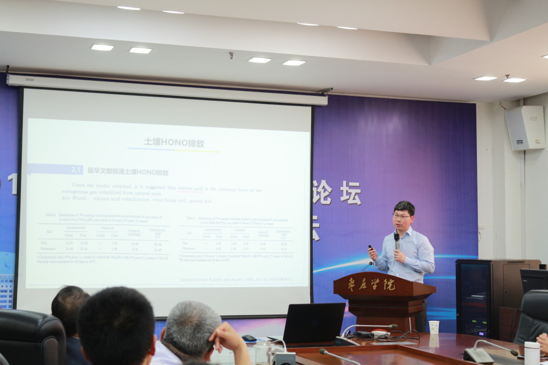活动分教师座谈和专业学术讲座两个阶段进行。首先,吴电明研究员高水平论文写作技巧与方法题与KY官网相关专业教师充分互动交流撰写高水平科研论文的方法和技巧,使KY官网教师为以后提高科研论文写作能力奠定了良好基础同时与会双方就今后进一步交流与合作交换了意见,达成共识。随后,吴电明研究员作了关于《土壤与大气界面HONO气体交换:方法、过程和影响》的研究报告。在报告中,他分别从研究背景、研究方法和研究结论三个方面介绍了他及其科研团队近年来所做的研究工作。