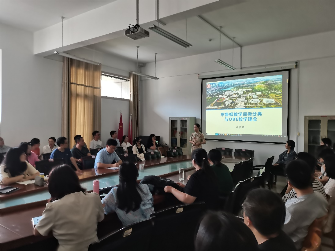此次活动分为三个环节。首先地理信息科学教研室孟彦如博士作了题为《布鲁姆教学目标分类与OBE教学理念》报告,接着旅游与酒店管理教研室王文杰副教授和靳野博士进行课程说课,最后旅游与酒店管理教研室张延老师进行示范课。