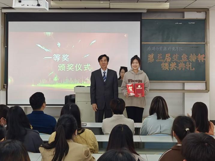 在本届"艾立特"杯旅游创新大赛中,KY官网有16组作品获奖,奖金总计6500元,其中张天奕与艾厚禄的《金风台城一相逢》荣获一等奖。颁奖典礼上,谢龙飞向获奖同学颁奖并表示祝贺,他指出大赛作为推动创新型人才培养的有效方式,对于增强同学们的社会责任感、创新能力和实践能力具有独特作用,并寄语同学们要积极探索、以赛促学、不断创新、不断进步,成长为一名能担当大任的旅游人。
