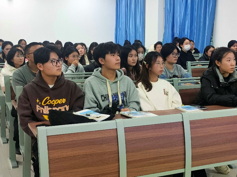 本次活动,王璐璟以“感恩新时代 逐梦新征程”为主题,主要从理想与实践、激发动力与提升自我认知、塑造积极价值观等多方面展开讲述。励志教育是应用教育心理学和成功理论,是增强我们内生动力的关键,是加强和改进我们思想素质的核心,并且对于学生成长成才具有十分重要的意义。同学们纷纷表示积极的心态是克服困难的关键,而坚定的意志力则是我们达成目标的动力,树立人生理想和自身奋斗目标,艰苦奋斗,脚踏实地,把握奋斗方向,从而实现自己的人生理想。