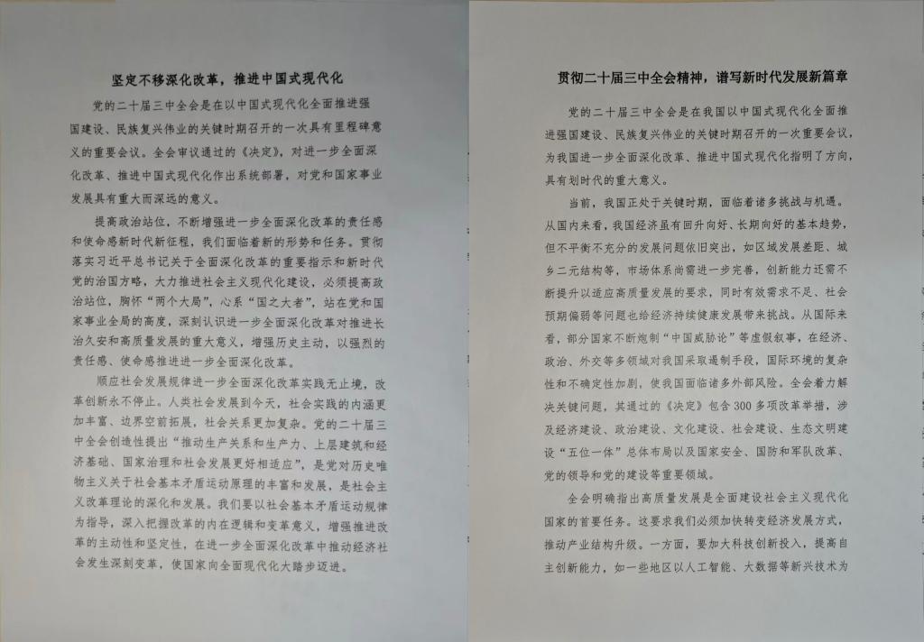 为深入学习宣传二十届三中全会精神,进一步激励青年学子凝聚奋进动力,厚植家国情怀,11月10日至12日,KY开元集团官网举办“学习贯彻党的二十届三中全会精神”主题征文活动,此次活动由学院在校学生积极参与。
