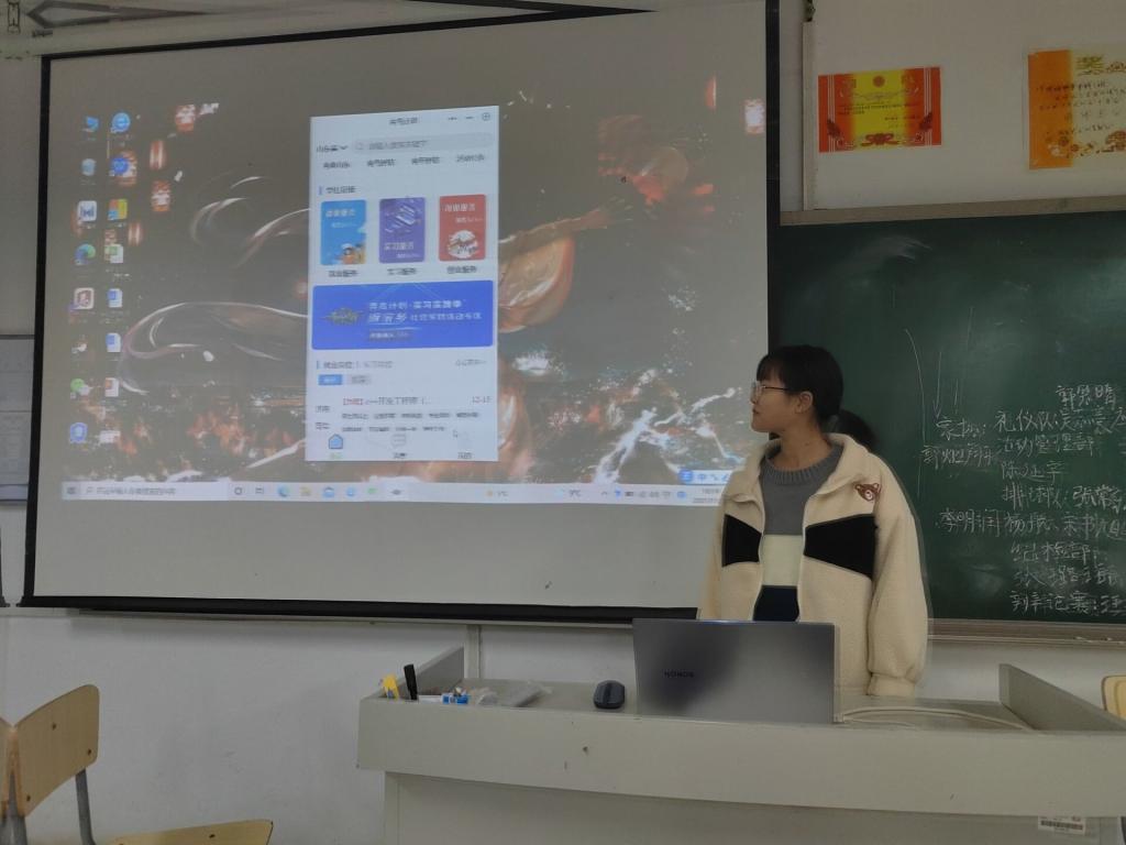 向全院学生解读青鸟计划是立足联系齐鲁学子的纽带、服务招才引智的窗口、汇集智力资源的平台三大定位,以实习实践、高质量就业、“双创”空间和校地合作为四大支撑,引导优秀学子感知齐鲁、成长成才,促进青年人才回鲁留鲁就业创业,实现“引凤还巢”,助力“招才引智”,助推山东高质量发展的专项行动。针对部分同学的技术操作难题,对“青鸟计划”平台的注册及使用流程进行了详细的说明。针对大学生职业规划问题,就业方向,向大家提出了以下建议:一、在安排好学业的同时,尽早开始实习工作;二、通过自身努力减少地域因素对实习工作带来的限制。