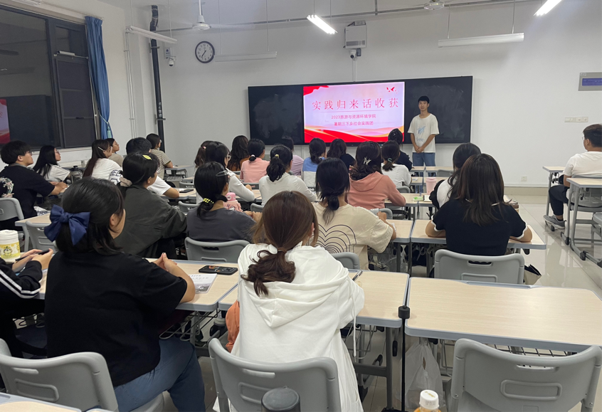大会伊始,来自22级地理科学专业的张珏同学从三下乡的前期准备工作、活动目的及意义、实践过程、实践成果以及心得体会等方面进行了汇报分享,赢得了一致好评。分享会现场,同学们积极交流,同时张珏同学讲述自身实践经历,分享归来成果,激发同学们积极走出校门,投身大社会中,重新认识自我,充分认识社会、服务社会的热情,并激励同学们踊跃参加今后的各项实践活动,培养吃苦耐劳品格,增强本领。