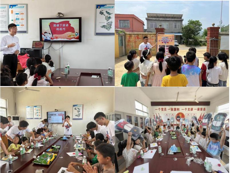 实践团充分发挥旅游管理专业特色,开展小小红色讲解员、熊耳山风景区推荐官、我做非遗传承人等几个模块,传授讲解技巧,推动山亭特色文旅、红色文化的宣传;通过情景模拟,培养小朋友们为家乡发展助力的责任感和使命感,为山亭区的文化传承与发展注入新活力、新希望。此外,实践团开设安全知识与教育小课堂,通过易拉宝讲解、现场讲解等多种形式向小朋友普及防诈骗、防溺水、消防安全、暑期安全相关知识,一系列实用的安全知识为孩子们的健康成长筑起一道坚实的防线。最后,实践团为小朋友们分发书包、文具等物资,叮嘱孩子们要好好学习,健康成长,努力做祖国和人民需要的好孩子,做祖国和人民事业发展的接班人。