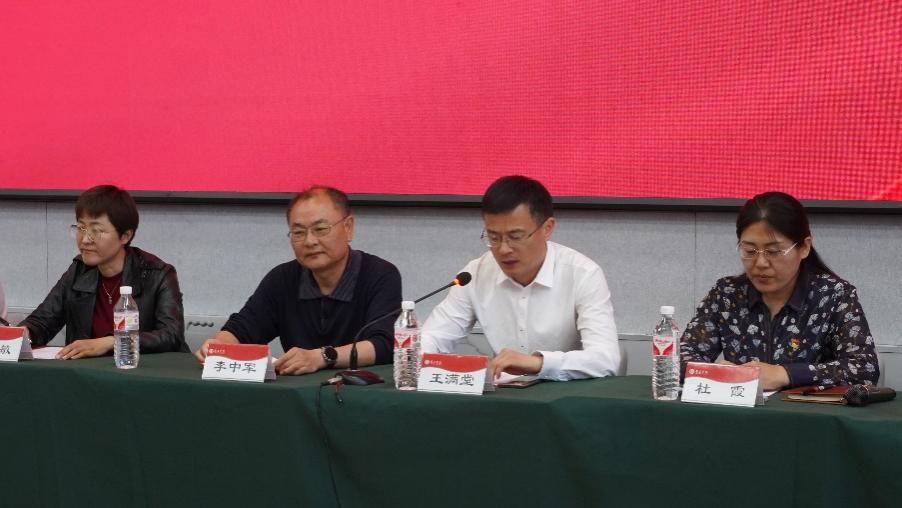 王满堂代表学院全体师生向获得表彰的先进个人和集体表示热烈的祝贺并向全体同学提出以下四点希望和要求:一要坚定理想信念,树立远大志向;二要勤奋学习,练就过硬本领;三要修身立德,培养高尚情操;四要勇于担当,积极奉献社会。