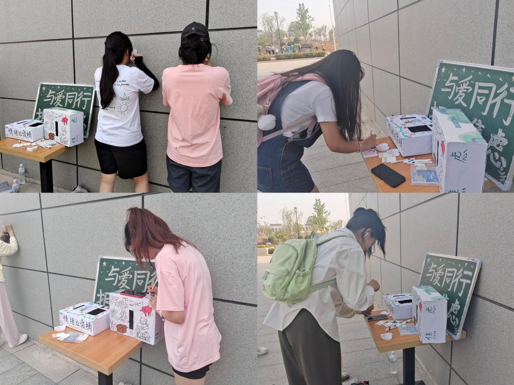 活动现场,同学们热情高涨,纷纷在便签纸上写下自己近期的烦恼困扰并放入“情绪垃圾箱”中,然后从“情绪垃圾桶”里抽取他人的便签,并真挚地为对方提供建议和鼓励,最后放入“开心收集箱”。活动形式新颖独特,通过互换心情盲盒的方式传递着温暖与关怀,使同学们在分享和互动中感受爱的力量,激励他们以更加积极的态度面对生活。同学们纷纷表示,通过活动中的交流和互动感受到了浓浓的关爱与支持,有效缓解了内心的焦虑,同时收获了许多宝贵的经验和感悟。
