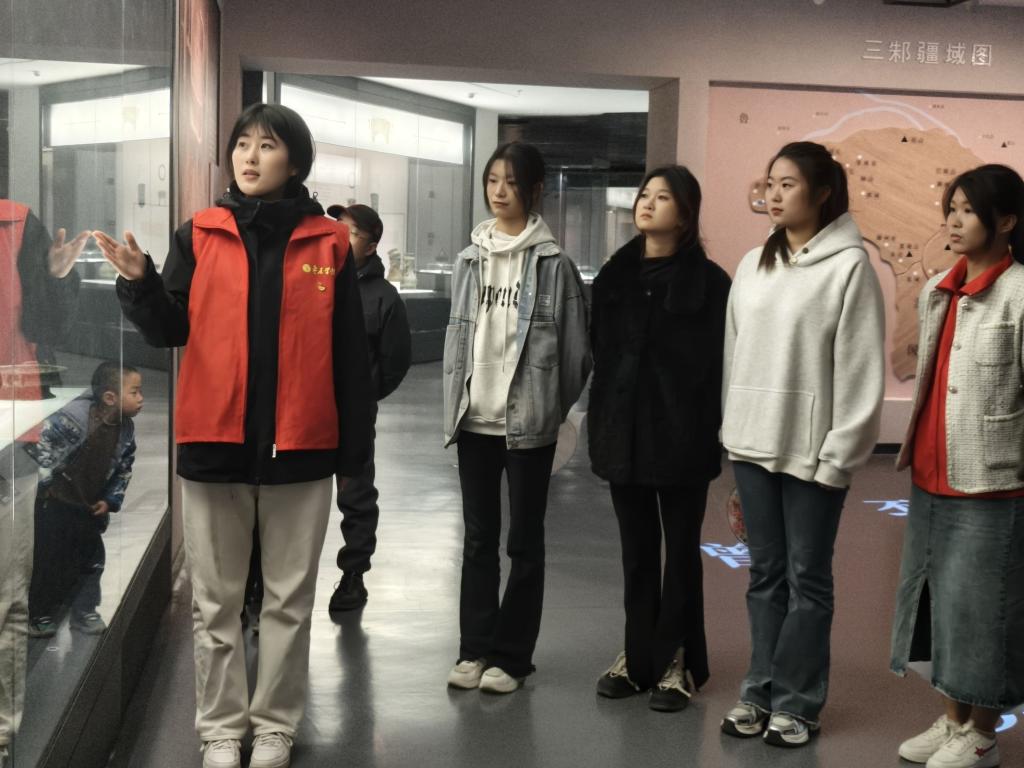 在活动中,志愿者们以饱满的热情和专业的态度,结合所学知识与相关史料,深入浅出地向参观者介绍了博物馆的各个展区。他们通过生动的讲解和互动交流,让参观者更加深入地了解了枣庄博物馆所承载的历史与文化。志愿者们不仅详细阐述了展品背后的故事,还积极与参观者进行互动问答,激发了参观者浓厚的兴趣。许多参观者在听完讲解后纷纷表示:对博物馆的历史文化背景有了更加深刻的了解,也对大学生志愿者们的专业素养和热情服务表示赞赏。